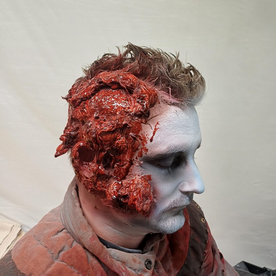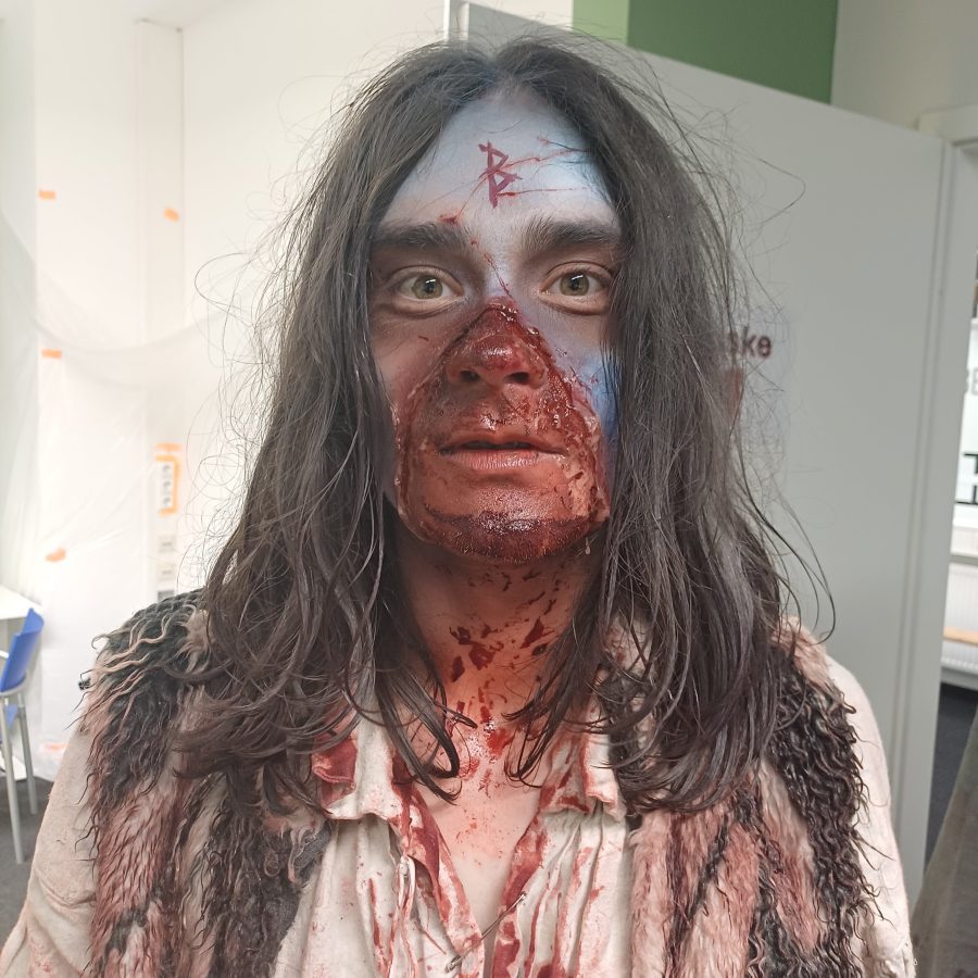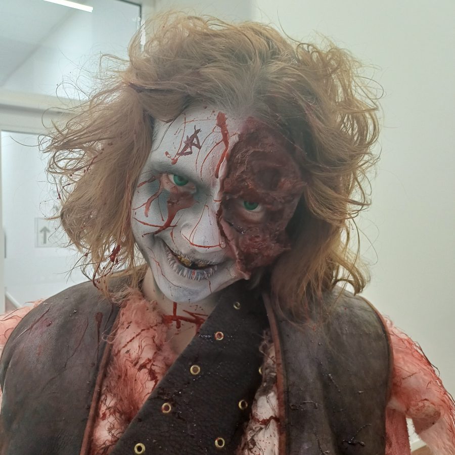 For the Spooky Tour, so-called crawlers were needed for the Maze Obscurum. Creatures that live underground. For this, I made silicone worms which were glued to the actor’s face and accordingly disfigured to look dirty.